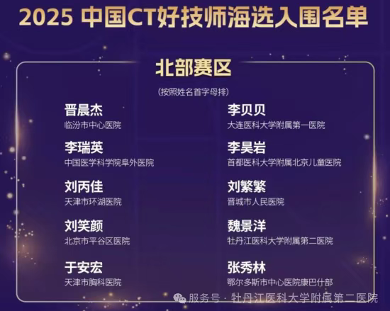 在第六屆“中國(guó)CT好技師”海選賽事中,我院優(yōu)秀青年醫(yī)師影像科魏景洋,憑借扎實(shí)深厚的專業(yè)功底與對(duì)CT影像技術(shù)的深刻理解,從覆蓋全國(guó)31個(gè)?。ㄗ灾螀^(qū)、直轄市)的640名精英技師里脫穎而出,成功晉級(jí)半決賽,成為黑龍江省晉級(jí)半決賽的唯一選手,即將代表黑龍江省征戰(zhàn)賽事,以實(shí)力生動(dòng)詮釋“技逐鋒芒”的賽事精神 。